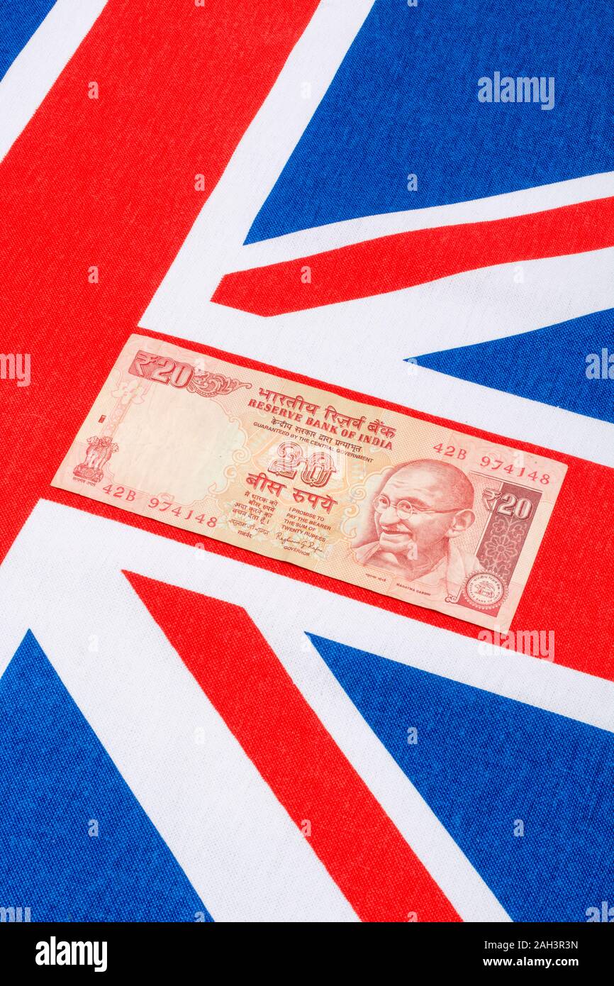 Old Style Indian 20 Rupee Banknotes Bill Union Jack For India