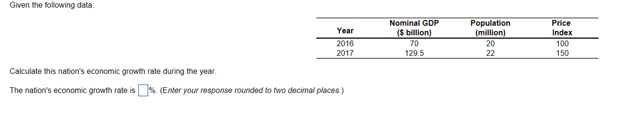calculate this nations economic growth rate during the year