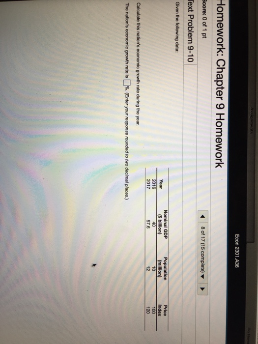 Solved Given The Tuwih Uale Nominal Gdp 9 Billion Popul