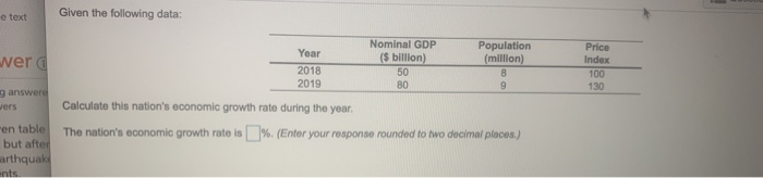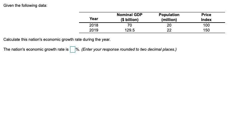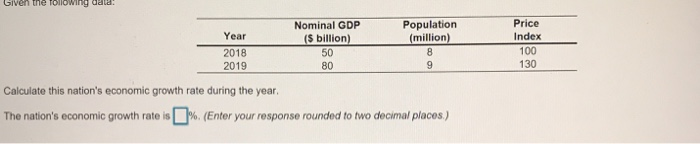 Solved Given The Following Data E Text Nominal Gdp Popul