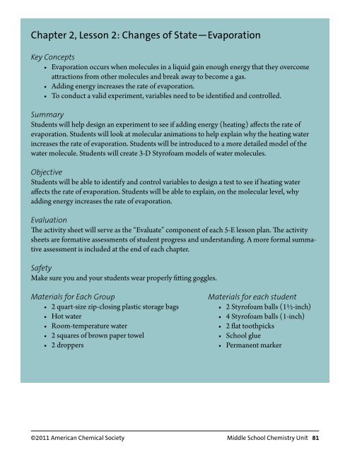 Changing State Evaporation Chapter 2 States Of Matter Middle