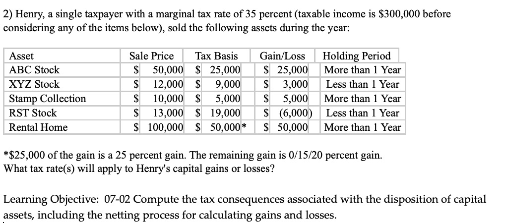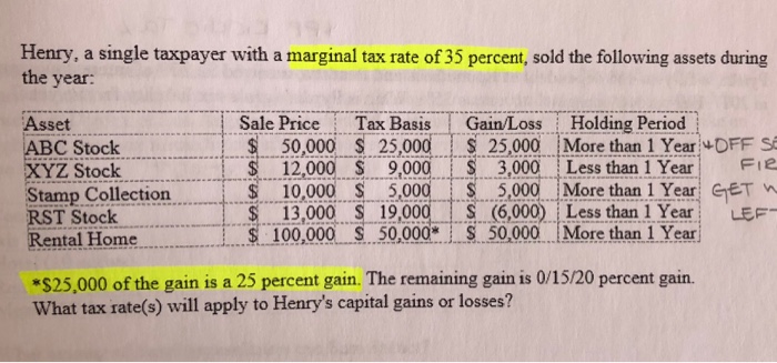 Solved Henry A Single Taxpayer With A Marginal Tax Rate